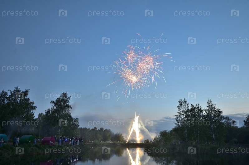 Салют посвященный Дню России в городе Омске, в парке 30 лет ВЛКСМ