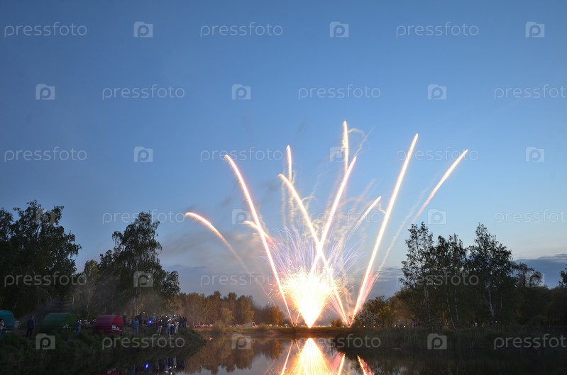 Салют посвященный Дню России в городе Омске, в парке 30 лет ВЛКСМ