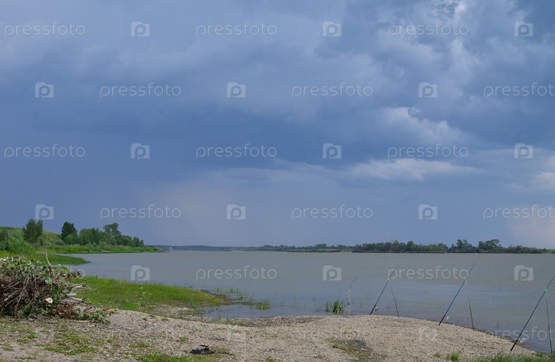 Надвигающийся штормовой фронт на реке Иртыш