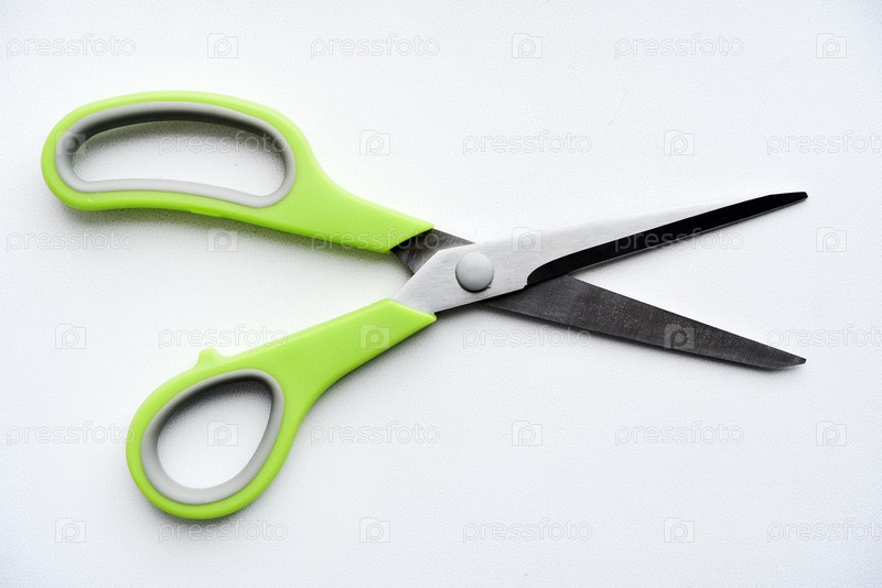 Швейные ножницы на белом фоне. Зеленые ножницы