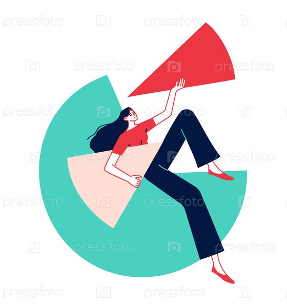 Женщина расслабленно работает с данными, лежа на большой диаграмме
