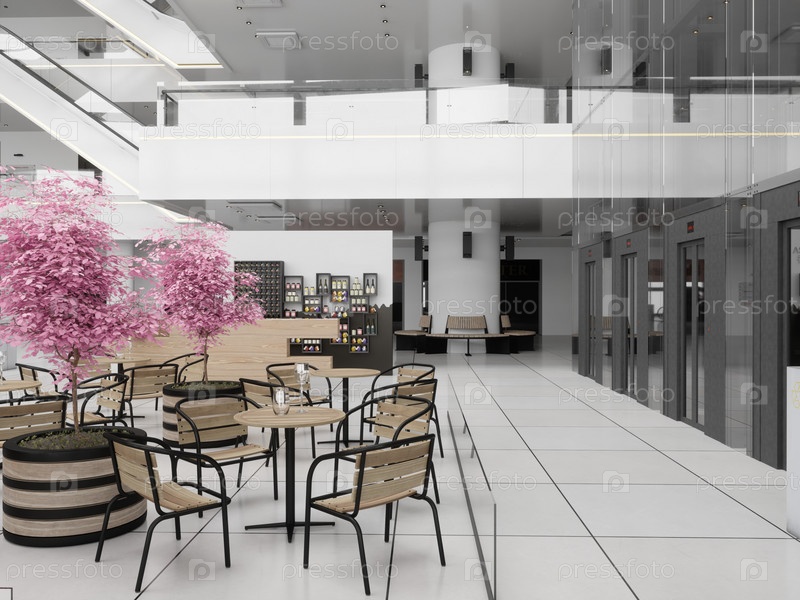 Эскалаторы в современном торговом центре. 3D-рендеринговый дизайн