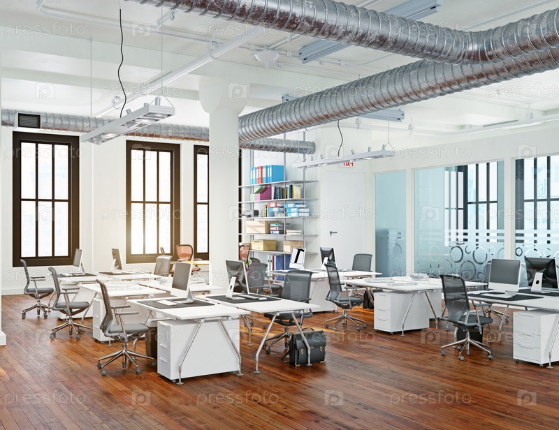 Концепция дизайна интерьера современного офиса. 3D-рендеринг дизайн