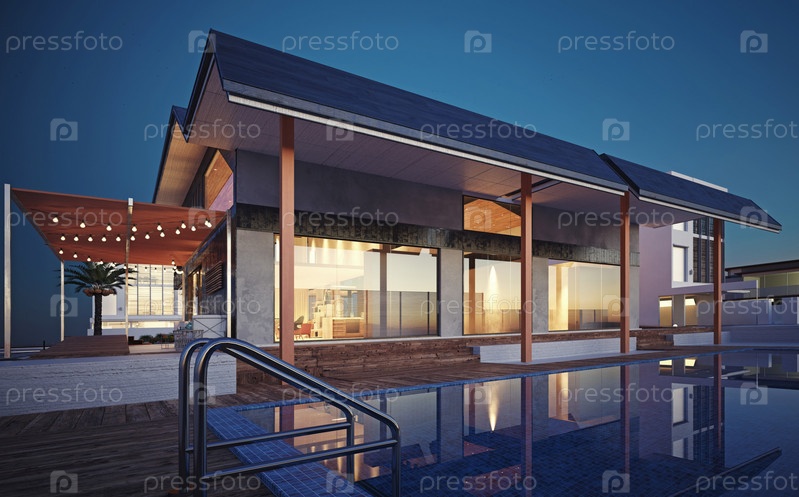 Внешний вид современного дома.Концепция архитектуры 3D-рендеринга