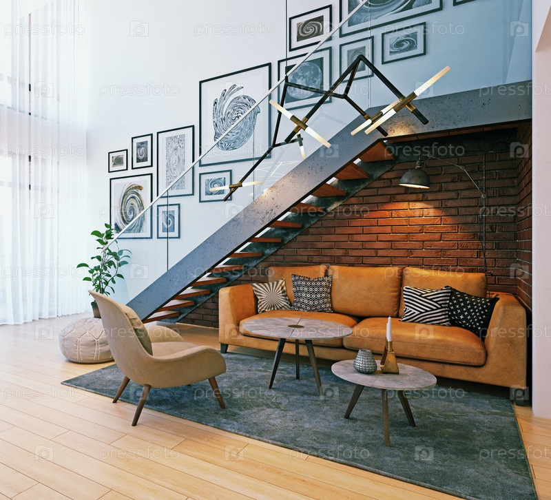 Современный домашний интерьер. Концепция дизайна 3D-рендеринга