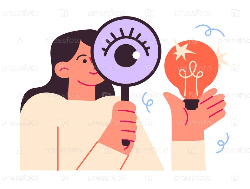 Женщина смотрит на идею через лупу