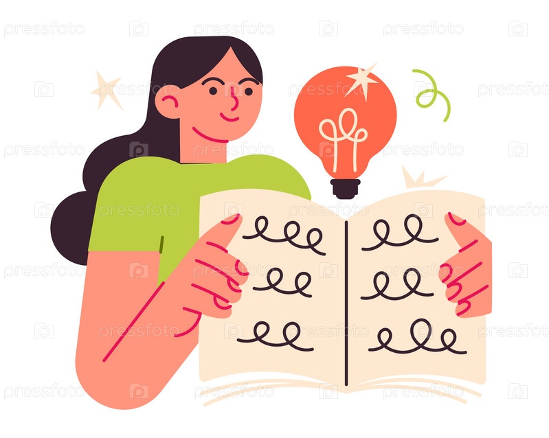 Женщина читает книгу и имеет представление, идею