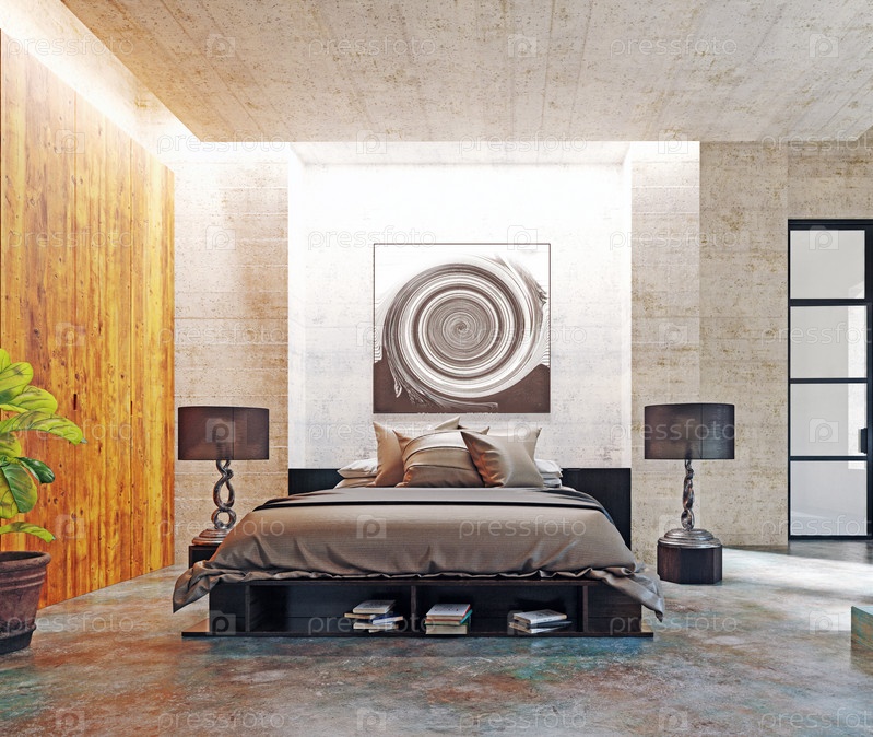 Современный интерьер спален в стиле лофт. Концепция 3D-рендеринга