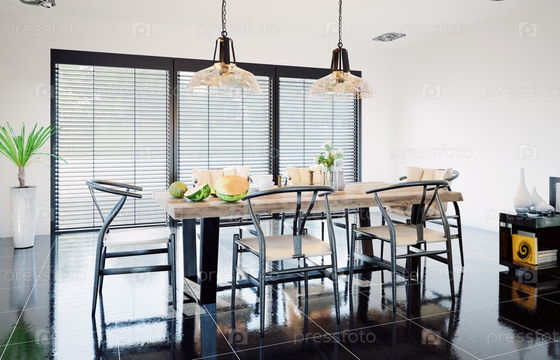 Современный интерьер домашней столовой. Концепция дизайна 3D-рендеринга