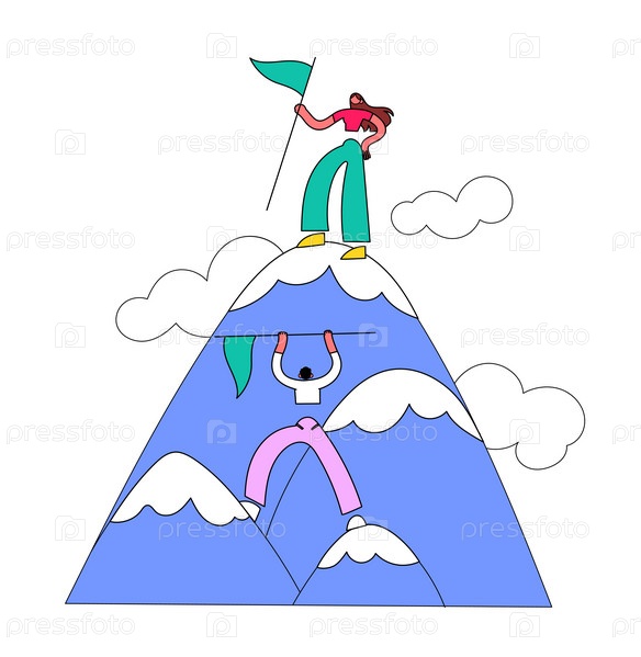 Люди, поднимающиеся на горный вектор