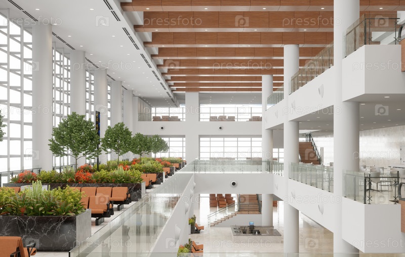 Новый дизайн терминала аэропорта - концепция 3D-рендеринга