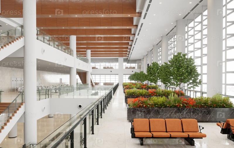 Новый дизайн терминала аэропорта - концепция 3D-рендеринга