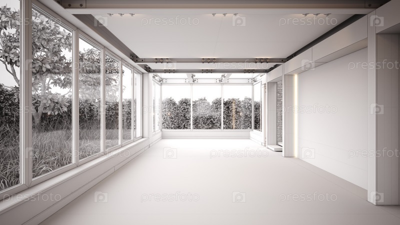 Пустой живой интерьер. 3D-рендеринг