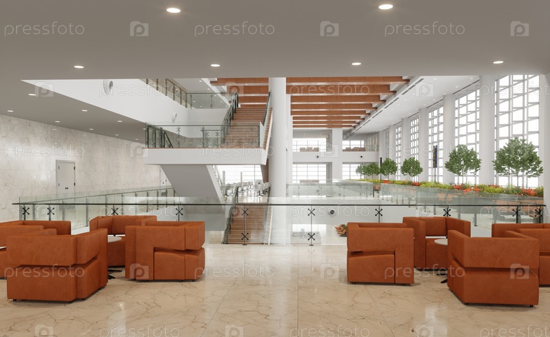 Новый дизайн терминала аэропорта - концепция 3D-рендеринга