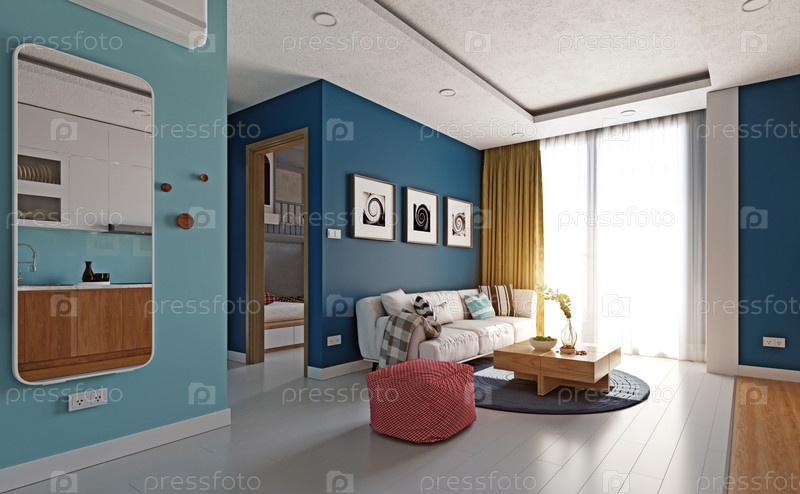Современный интерьер квартиры. Концепция дизайна 3D-рендеринга