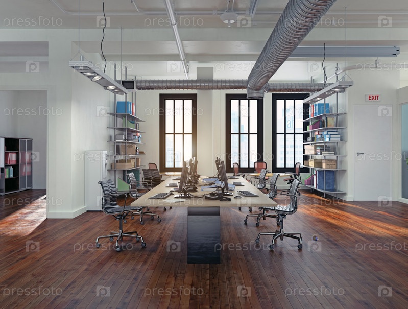 Концепция дизайна интерьера современного офиса. 3D-рендеринг дизайн