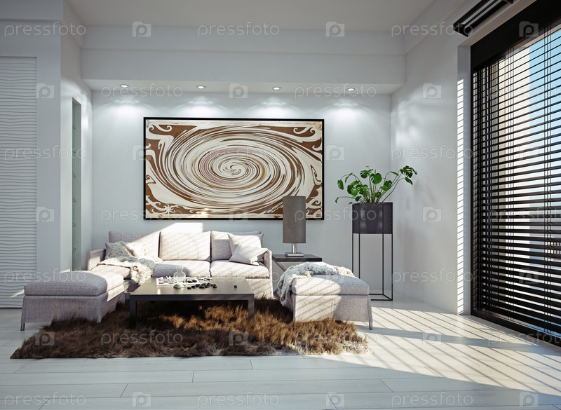 Современный дизайн гостиной. Концепция 3D-рендеринга