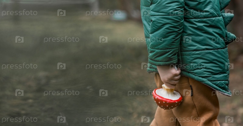 Ребенок и мухомор. Мальчик с мухомором. Опасный ядовитый гриб в руках ребенка. Отравление грибами, микродозирование, употребление фитопрепаратов