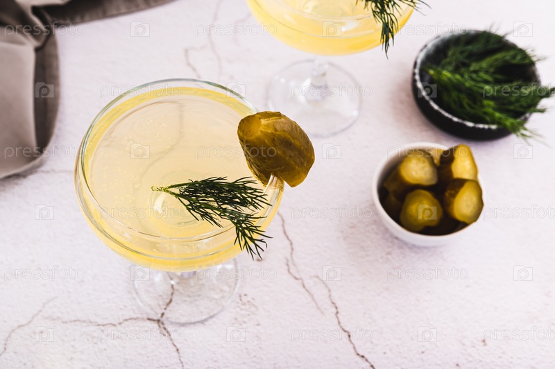Освежающие коктейли с мартини из соленых огурцов в стаканах на столе