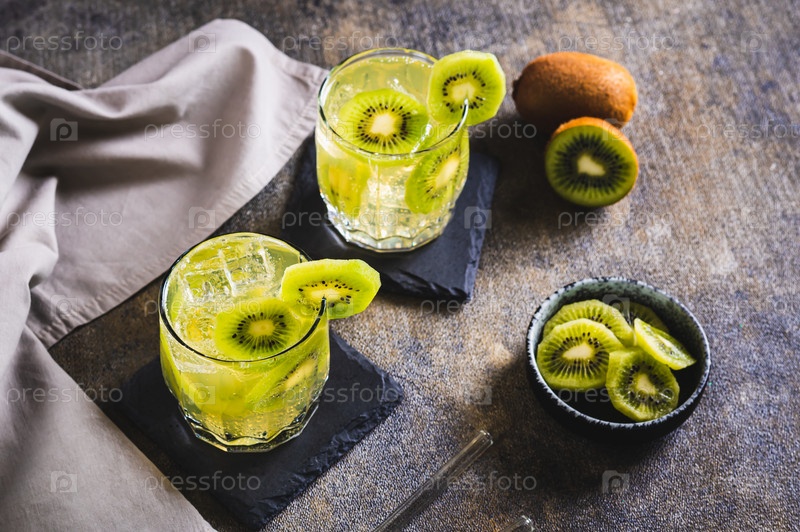 Освежающий тропический напиток мохито с киви в стаканах на столе