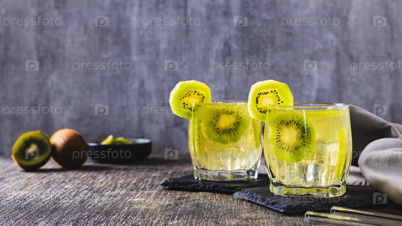 Летний холодный коктейль мохито с киви в стаканах на столе веб-баннер