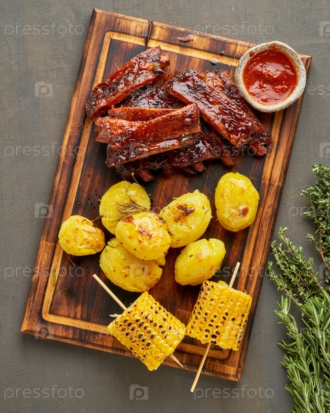 Острые свиные ребрышки барбекю, кукурузные початки и картофельное пюре. Рецепт медленного приготовления