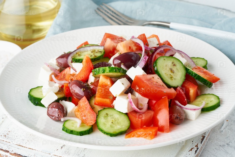Греческий деревенский салат хориатики с сыром фета, оливками, помидорами черри, огурцом и красным луком