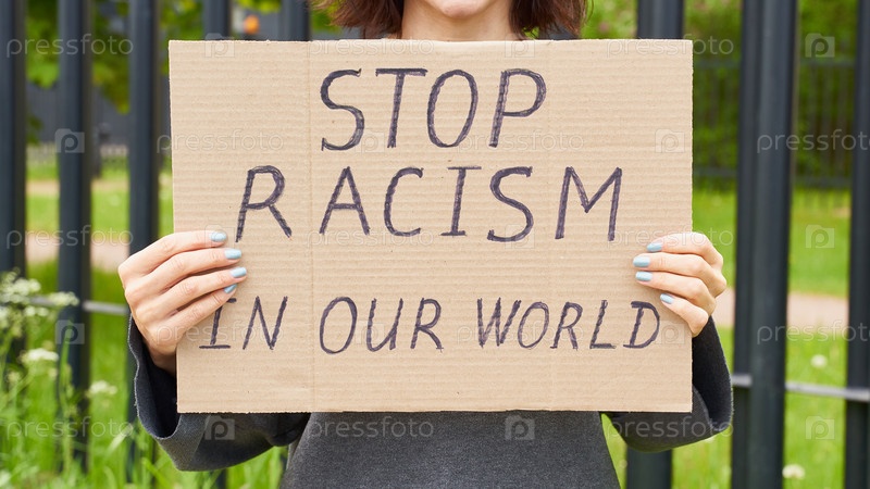 Остановить концепцию расизма. Неузнаваемый белый человек держит табличку с текстом против расизма