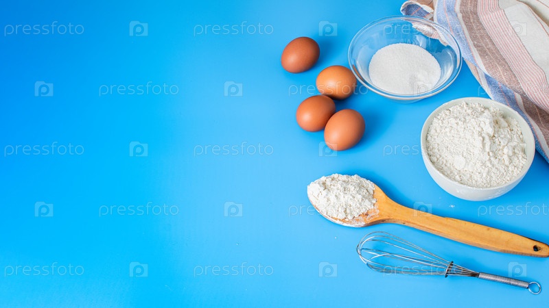 Вид сверху на фон с ингредиентами для выпечки с местом для текста