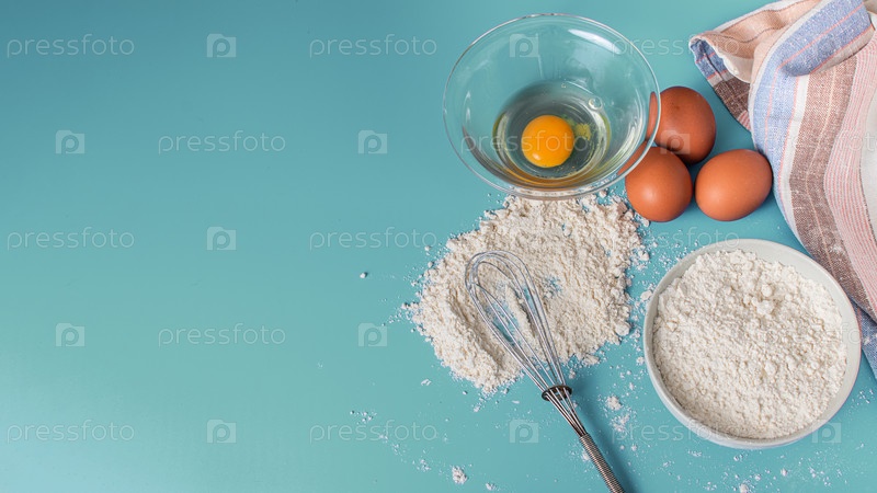 Вид сверху на фон с ингредиентами для выпечки с местом для текста