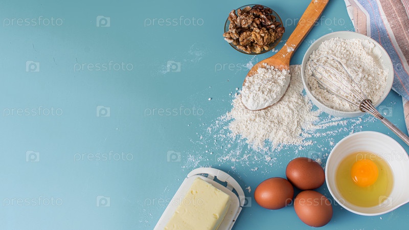 Вид сверху на фон с ингредиентами для выпечки с местом для текста