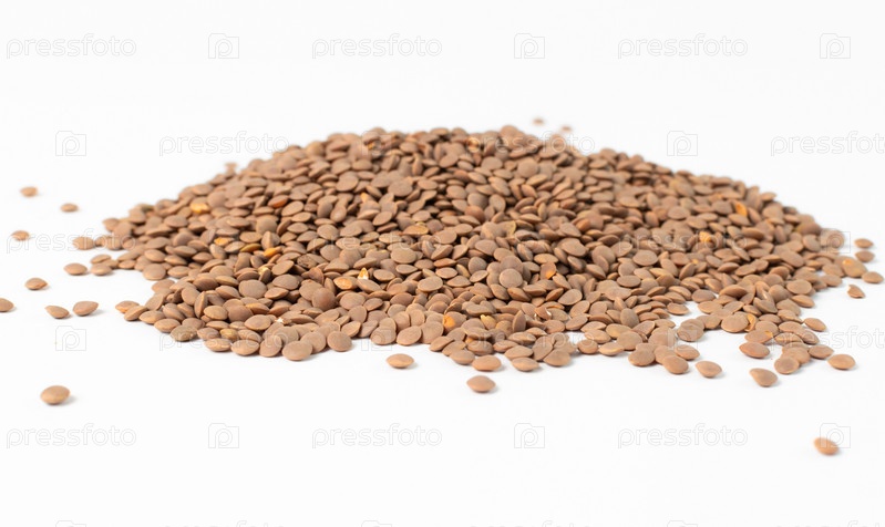 Чечевица сложена на белом столе
