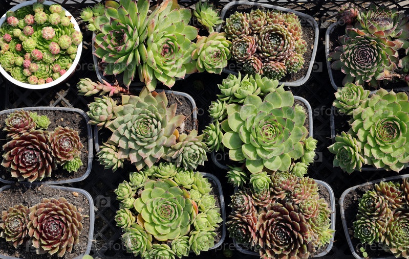 Молодежь (лат. Sempervivum) растет в садовых контейнерах
