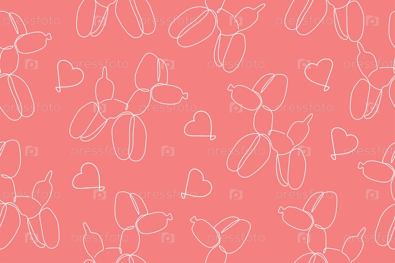 Классическая собачка из шариков. Векторный бесшовный рисунок милого мультяшного пузырькового животного на розовом фоне. Элемент дизайна логотипа, открытки, принта на футболке, приглашения, аксессуаров. Вектор