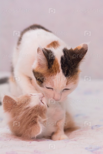 Двухмесячный котенок сидит и смотрит прямо в камеру