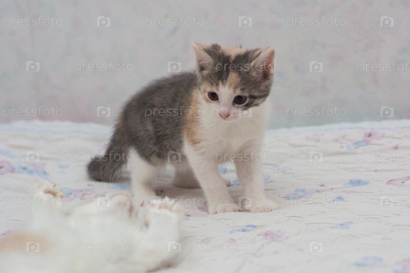 Трехмесячные котята играют друг с другом
