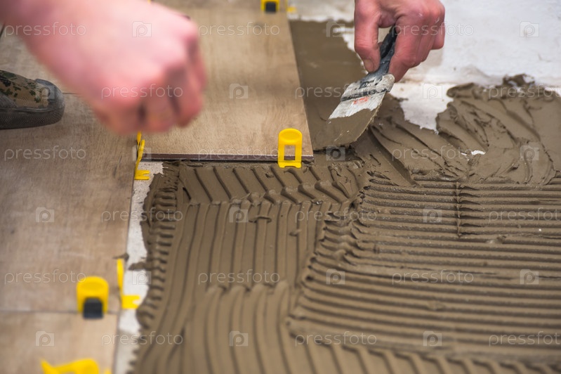Процесс укладки напольной плитки на основание СВП, система выравнивания плитки