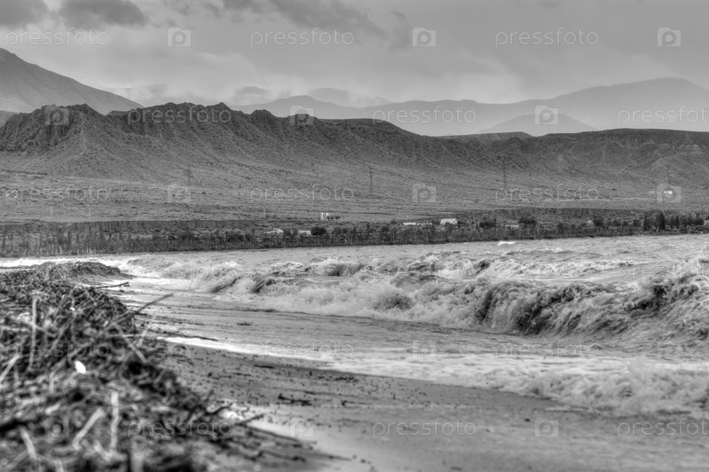 Штормовые волны на озере Иссык-Куль, грязная, но красивая вода. избирательный фокус