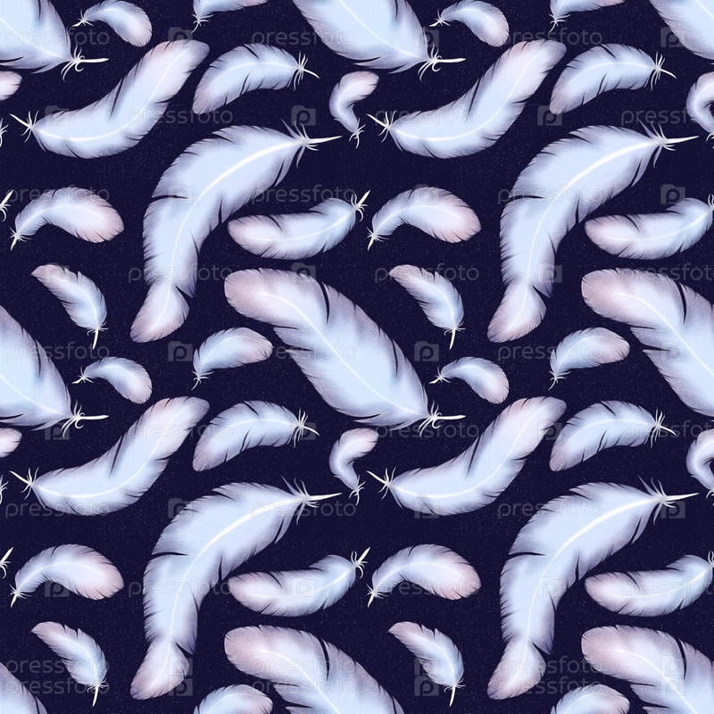 Бесшовный паттерн перья на синем фоне