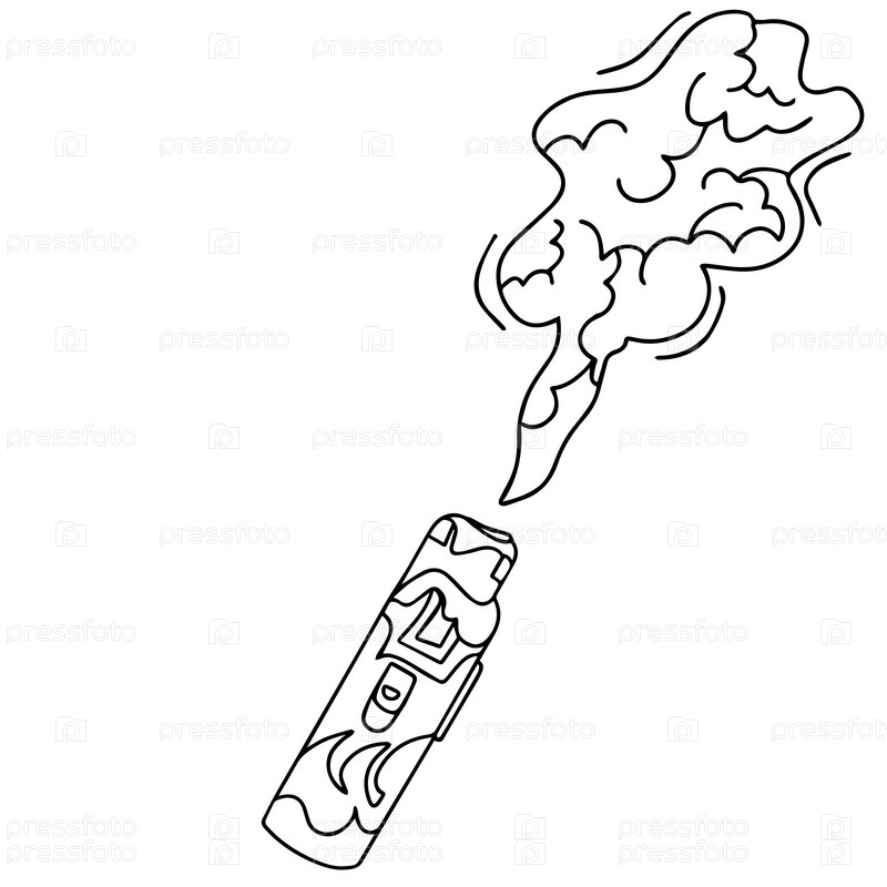 Минималистичная иллюстрация электронной сигареты с дымом в стиле каракулей. Вред курения для здоровья. Бросьте курить и вейпинг