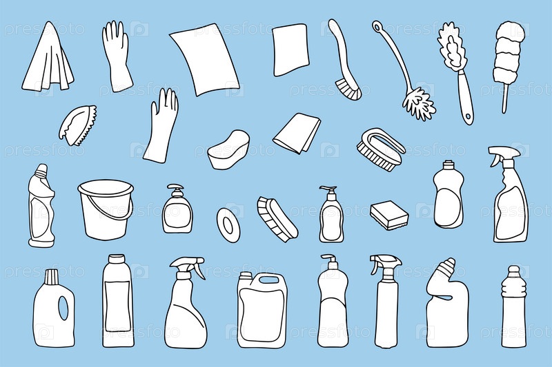 Комплект уборочного оборудования. Иконки линий очистки. Линия чистящих, моющих и дезинфицирующих средств ручной работы