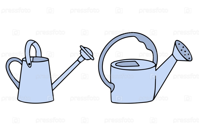 Садовые лейки в стиле каракулей. Простые значки лейок. Нарисованный от руки контур лейки для сада