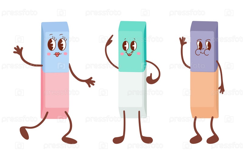 Набор красочных ластиков в стиле каваи. Векторная иллюстрация выделена на белом фоне