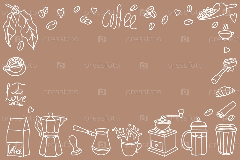 Симпатичные каракули мультяшные иконки кафе. Набор рисованных вручную дизайнов кофе: напитки, закуски и кофейная посуда. Векторный контур рисованной кофе и пекарни для меню кафе