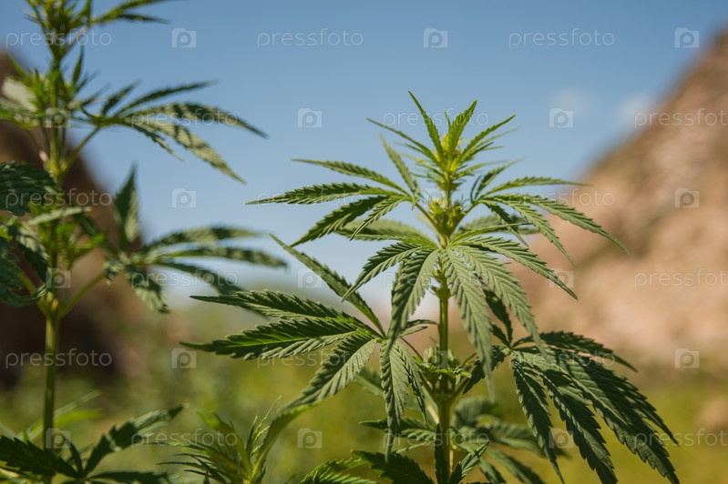 Кусты и листья конопли крупным планом, Кыргызстан