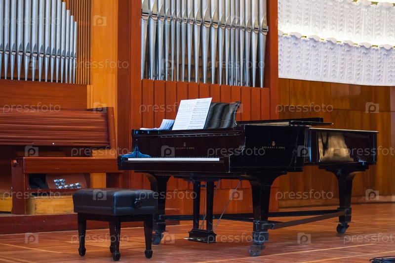 Черный рояль на сцене филармонии