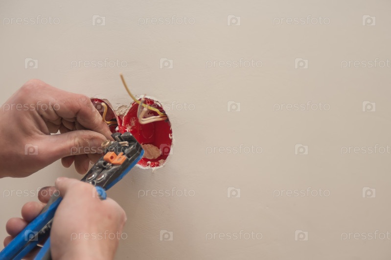 Монтаж, установка выключателя и розетки. Зачистка кабеля перед подключением