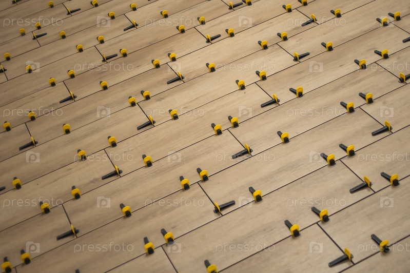 Процесс укладки напольной плитки на основание СВП, система выравнивания плитки