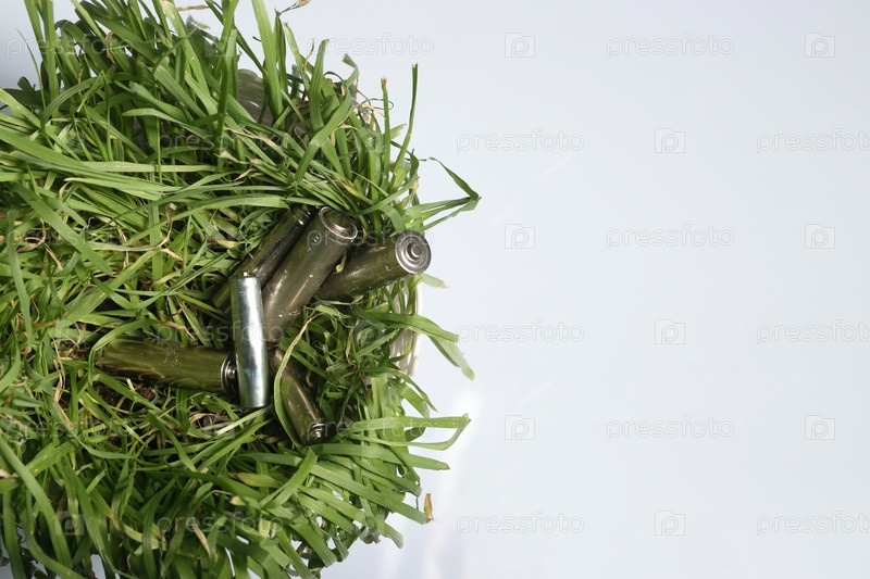 Использовали пальчиковые батарейки на вялой зеленой траве. На белом фоне