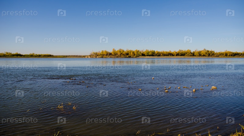Вид на осенний берег реки Иртыш в Омской области